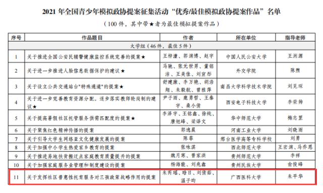 近期,团中央公示了2021年全国青少年模拟政协提案征集活动评审结果。乐动体育 乐动体育 报送的参赛作品《关于发挥社区普惠性托育对三孩政策战略性作用的提案》荣获全国“优秀模拟政协提案作品”(全国仅100件。广西唯一入围作品)!