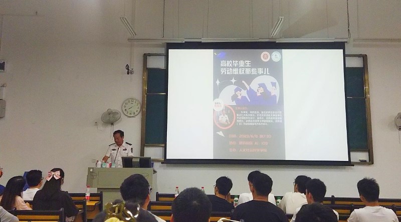 为进一步提高2024届毕业生劳动法律意识,保护自身合法劳动权益,乐动体育 联合“启航”生涯辅导工作室于6月8日晚在武鸣校区A1-109教室开展“高校毕业生劳动维权那些事儿”专题职前科普讲座。本次讲座邀请到武鸣区综合行政执法七大队大队长韦海东主讲,学院全体2024届毕业生300余人参与本次讲座,讲座由学校依法治校办公室主任谢青松老师主持。