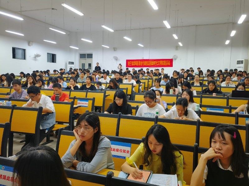 讲座伊始,韦海东大队长向同学们介绍了劳动保障监察部门的职责与作用,以及就业对高校毕业生的重要性,并鼓励大家树立正确的就业观,重视劳动。之后,韦队长围绕就业年龄、劳动合同、试用期、劳动权利、劳动关系解除、劳动争议的处理等方面所涉及的法律知识结合案例方式展开了深入讲解。在互动环节,同学们纷纷就劳动就业法律方面的疑惑提出问题,韦队长都一一进行了解答。现场氛围热烈,韦队长浅显易懂的讲解赢得了全场师生的一致赞誉,取得了良好效果。
