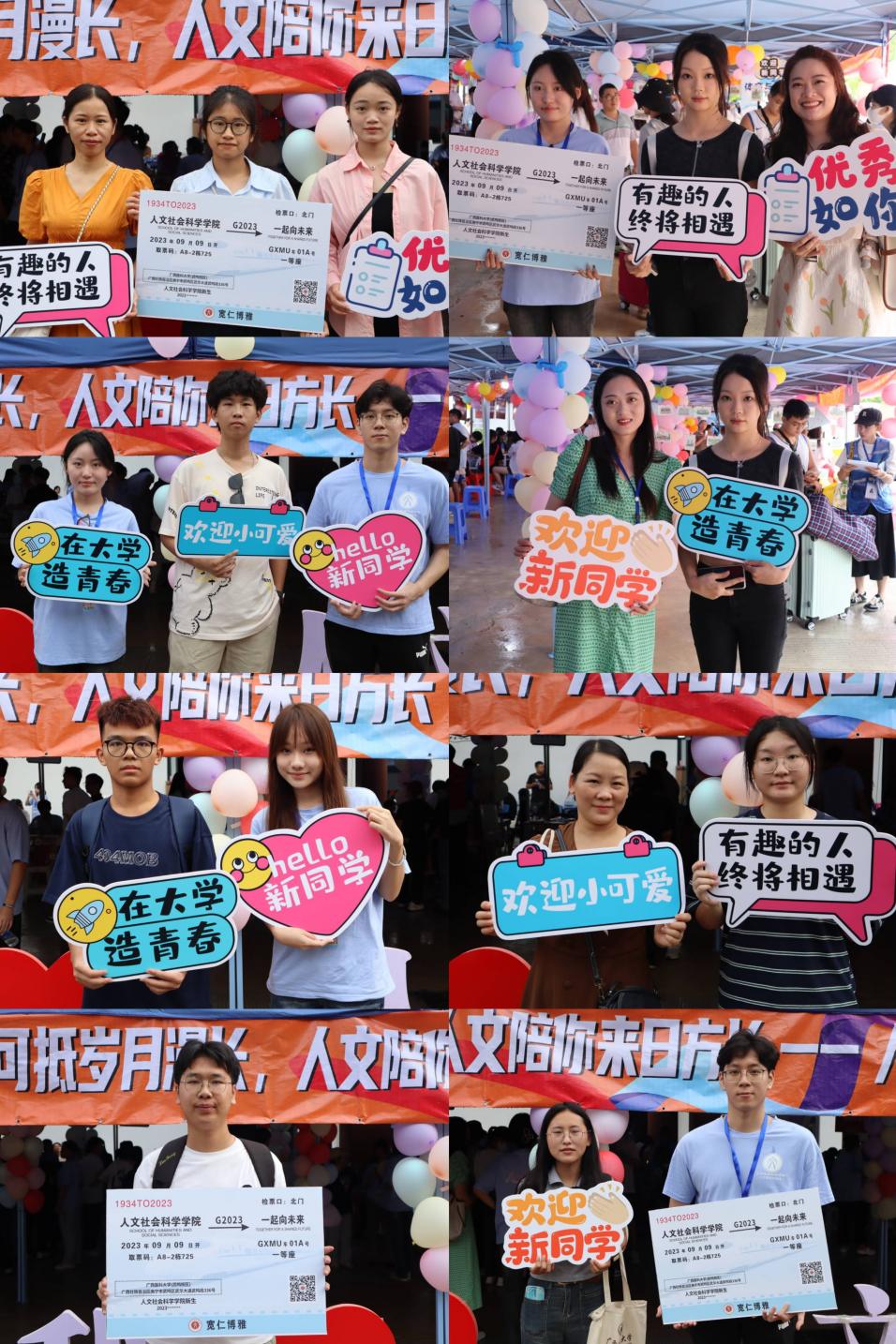 随着报道工作的持续进行,学校领导、相关职能部门负责人在学院领导的陪同下,来到人文学院的迎新报到点,与现场工作人员了解新生报到注册情况,慰问现场工作人员和志愿者,并与同学们合影。