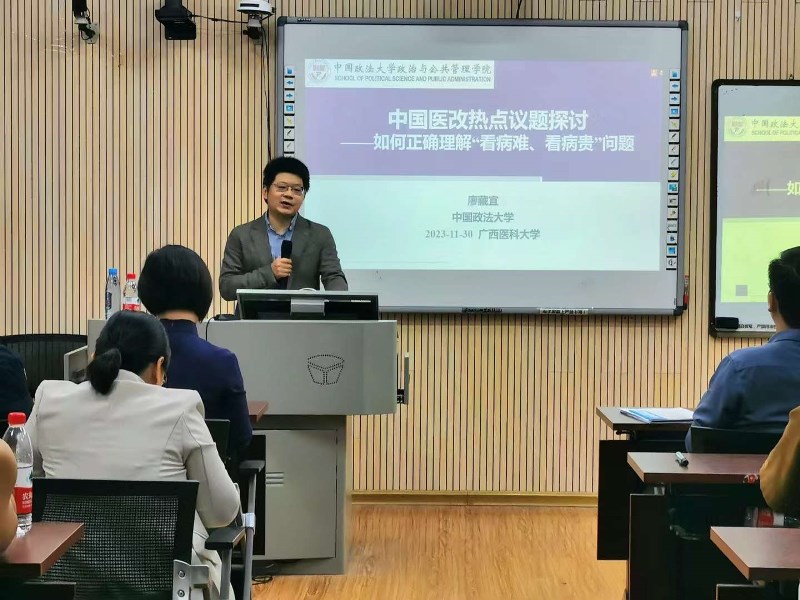 为进一步加强乐动体育 学术氛围,提高乐动体育 师生学术思维能力,11月30日下午,在乐动体育 101教室,中国政法大学副教授廖藏宜和宝鸡市医疗保障局原副局长齐有智作为嘉宾受邀来到乐动体育 为乐动体育 师生分别以“中国医改热点议题探讨——如何正确理解‘看病难、看病贵’问题”以及“医保基金监管的法制化进程”为题目做了两场精彩的讲座。乐动体育 党委副书记郑茸、乐动体育 社会保障系主任黄李凤等老师及乐动体育 各级研究生参加了讲座。