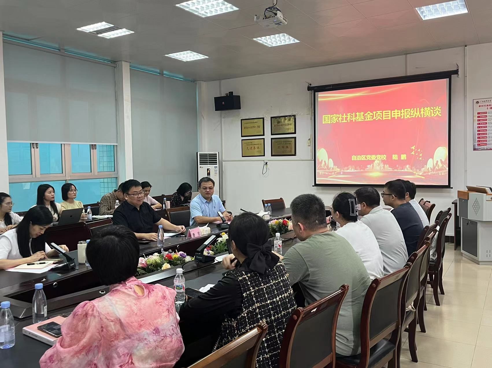 2024年10月21日下午,乐动体育 特邀中共广西区委党校研究室主任、宣传处处长、研究员陆鹏在校本部206会议室作《国家社科基金项目申报纵横谈》专题讲座,乐动体育 、马克思主义乐动体育 和信息与管理乐动体育 科研人员参加讲座。讲座由乐动体育 党委书记唐忠主持。